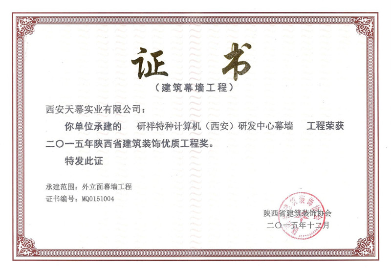 2015年度陜西省建筑裝飾優(yōu)質工程——研祥計算機西安研發(fā)中心