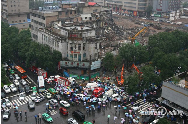 9月11日上午10時(shí)左右,計(jì)劃拆遷的西安市東大街華僑商店發(fā)生一起坍塌事故,事故造成一男一女2人死亡,一名14歲的西安女孩在事故中獲救。