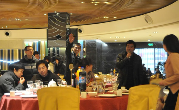 2012年2月10日晚上六點(diǎn),西安天幕實(shí)業(yè)有限公司新春聯(lián)誼會(huì)在長(zhǎng)征國(guó)際酒店中餐廳舉行,吳劍總經(jīng)理致祝酒詞: