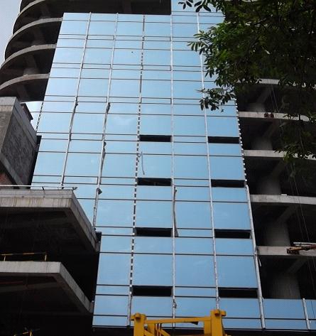 單元式幕墻是國際上近年出現(xiàn)的高檔建筑外圍護系統(tǒng),是建筑產(chǎn)品工廠化的產(chǎn)物,代表著建筑外圍護系統(tǒng)的未來發(fā)展方向。其構(gòu)成原理是:幕墻是在工廠中制成一單元組件,這種組件一般為一個樓層高度,也可以為2-3層高,一個單元組件就是一個受力單元。安裝時將單元組件固定在樓層樓板(梁)上,水平方向相鄰兩單元組件的左右豎框通過對插形成豎向組合,上單元下框與下單元的上框?qū)Σ褰M合成橫向組合,這樣它所承受的載荷是由單元組件的豎框直接傳遞到主體結(jié)構(gòu),它的分格接縫不在整體桿件上,而是兩相鄰單元組件的框通過對插形成組合桿。單元幕墻的最突擊的特點是安裝速度快,可與土建同步施工。