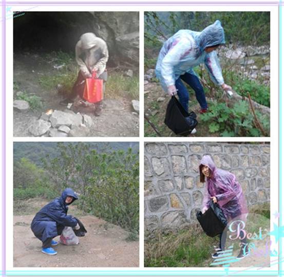 早上八點(diǎn)大家準(zhǔn)時(shí)在公司集合,按照活動(dòng)計(jì)劃,八點(diǎn)十分,統(tǒng)一從公司出發(fā),這次活動(dòng)的地點(diǎn)是風(fēng)景秀麗的高冠瀑布。在山底下大家分發(fā)了勞動(dòng)工具(手套,筷子,垃圾袋,雨披),邊欣賞沿途風(fēng)景邊撿拾路邊的垃圾,尤其是中途山上飄起了小雨,大家的活動(dòng)熱情絲毫沒受到影響,經(jīng)過三個(gè)多小時(shí)的奮戰(zhàn),每個(gè)人手中都已是“戰(zhàn)果累累”,我們天幕人用自己的實(shí)際行動(dòng)踐行了“綠色環(huán)?!钡木?。