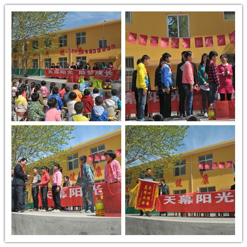 最后大家向5名貧困學(xué)生分發(fā)了學(xué)習(xí)用品及資助款,鼓勵他們熱愛生活,健康成長。儀式結(jié)束時,馬廠小學(xué)劉校長將一面印有“真情永駐,愛心傳遞”的錦旗贈予我們天幕陽光基金會。一首《愛的奉獻》在場中響起,“這是心的的呼喚、這是愛的貢獻,這是人間的春風(fēng)、這是生命的源泉”在悠揚的歌聲中本次天幕陽光基金活動儀式圓滿結(jié)束。