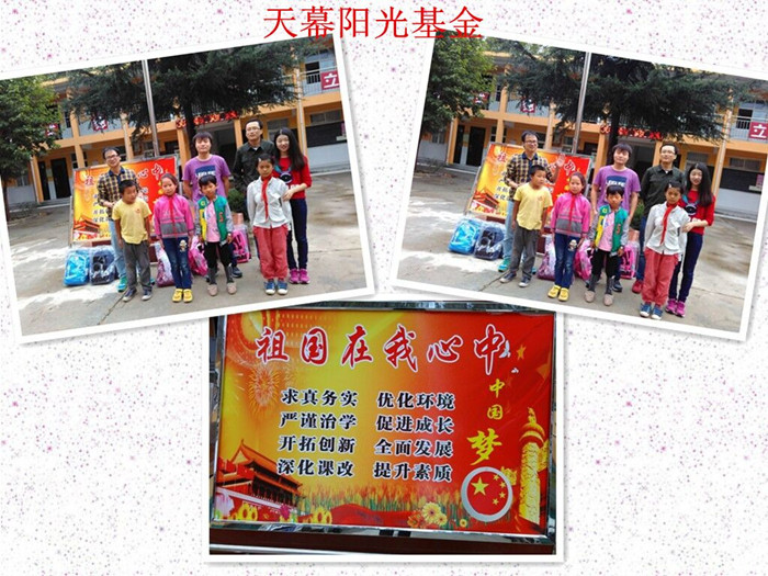 當(dāng)我們將衣服、書包、文具及生活費一一贈送給他們的時候,,我們隱約看到,在他們的眼底,零星泛起的瑩瑩淚光,是喜悅,是感動。也許這些對于我們這些長期居住的繁華都市里的人們來說,并不算什么,可就是這樣一個簡單、純粹的小小舉動,卻對于這里的孩子來說,就是一種幸福,也是一種激勵。心存善,行至美,給予他們物質(zhì)幫助的同時,也是在為他們幼小的心靈注澆一份善良、一份感恩、一份美好。
