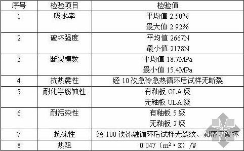陶土板具有優(yōu)良的物理和力學(xué)性能。經(jīng)國家建筑材料測試中心依據(jù)國家相關(guān)標(biāo)準(zhǔn)的檢測試驗,其性能指標(biāo)可達(dá)到下表所示(樣板尺寸為:120×245mm)。