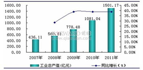 近年來,中國建筑幕墻行業(yè)持續(xù)快速增長。數(shù)據(jù)顯示,2011 年,中國建筑幕墻行業(yè)規(guī)模以上企業(yè)有452 家,比2010 年增加了85 家;銷售收入1101.85 萬元,同比增長32.71%;利潤總額為176 億元,同比增長76.82%。;資產(chǎn)總計(jì)1209.34 億元,同比增長35.20%;建筑幕墻總產(chǎn)量達(dá)到8300 萬平方米,較2001 年增長了4.19 倍。行業(yè)經(jīng)濟(jì)效益良好。