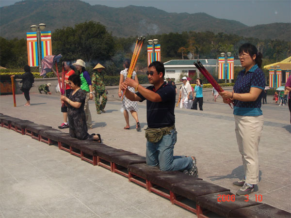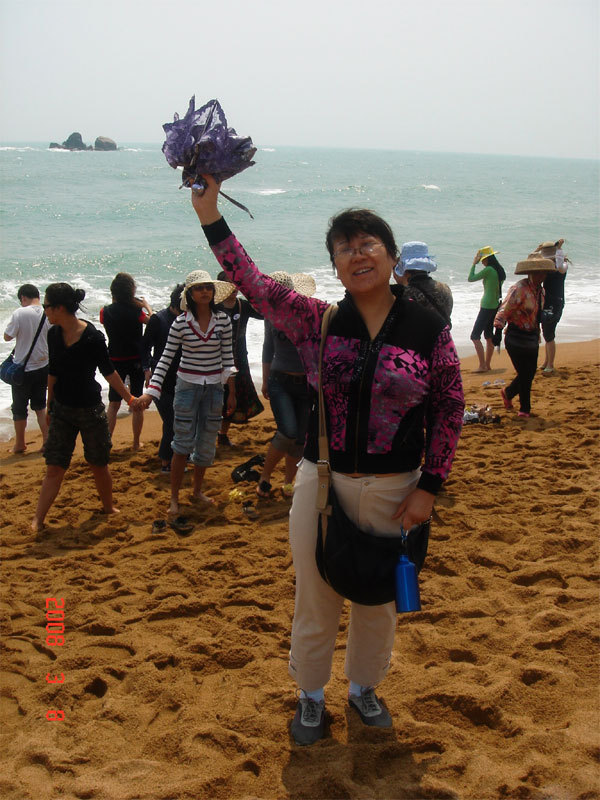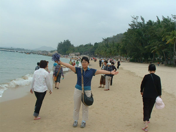 接下來的幾天我們在導(dǎo)游的帶領(lǐng)下,游覽了分界洲、瓊海、大東海、亞龍灣、萬泉河、五指山和天涯海角等風(fēng)景區(qū),海南景色優(yōu)美,環(huán)境清新,游人也很文明,生怕玷污了自己內(nèi)心的凈土,尤其是在“天涯海角”,那里聚集了很多游客,有親密的情侶、有攜手的老伴、有相擁的中年人、有提鞋嬉戲的孩童。人們在此處留影,光腳到沙灘上行走,海水拍打著腳面,暖暖的,軟軟的,麻酥酥的,沁人心脾。從腳到全身的每個細胞都游離在舒適、輕松、溫暖和諧的感覺中,近看,有一對年輕人漫步跑入海灘,追逐著海浪,海浪突然急轉(zhuǎn)身想擁抱他們,他們急速回跑,但仍然被澆個梨花帶雨。向遠處看,海水很靜,很藍,就象熟睡中的寶貝,沒有咆哮,沒有狂燥,偶爾吹來的海風(fēng),好象大海傾訴的心聲。
