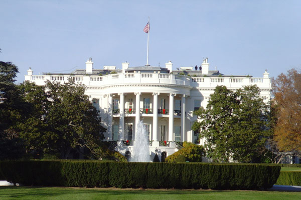 白宮:美國總統(tǒng)的府邸,相當(dāng)于中國的中南海。美國總統(tǒng)每天早晨在白宮前的廣場上發(fā)表3分鐘演講。世界各國的最新動態(tài)從這里發(fā)出。