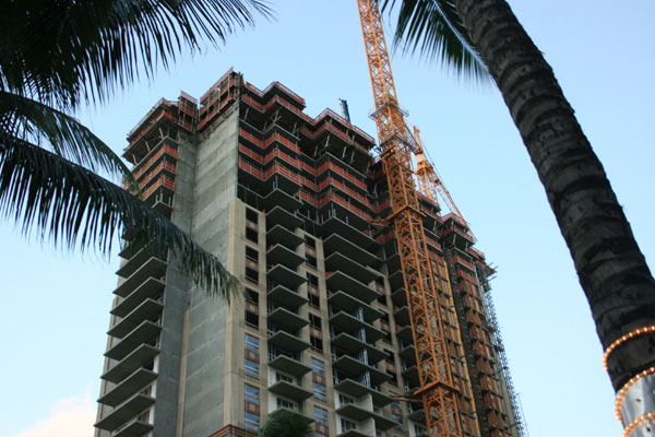 夏威夷附近正在建設(shè)的樓層:美國建筑工業(yè)化十分發(fā)達,施工過程中人工的配比比例很小,建設(shè)速度很快。
