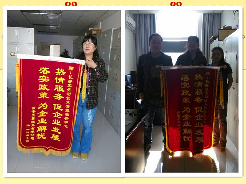 9月30日上午,風(fēng)和日麗,陽(yáng)光明媚,我和公司的兩位同事一起來(lái)到了西安市長(zhǎng)安區(qū)勞動(dòng)就業(yè)管理服務(wù)中心,用雙手送上了我們?yōu)楦兄x該中心制作的錦旗《熱情服務(wù)促企業(yè)發(fā)展,落實(shí)政策為企業(yè)解憂》。