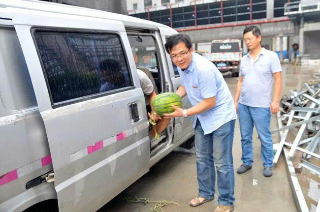 7月27日下午,頂著炎炎烈日、迎著滾滾熱浪,公司工程部副總雷曉峰、質(zhì)檢部部長王健、行政部劉新峰主任等公司相關(guān)領(lǐng)導(dǎo)一行5人走進(jìn)高新9號廣場施工現(xiàn)場看望慰問一線建筑工人,并且為在一線工人送來了西瓜、綠豆、毛巾、白糖及茶葉等夏季防暑降溫物品,同時提醒大家,要增強(qiáng)安全防范意識、自我保護(hù)能力以及新安全生產(chǎn)法的學(xué)習(xí);要求項(xiàng)目部要牢固樹立“安全第一、預(yù)防為主”的思想,抓好夏季防暑降溫工作,合理安排好施工人員的作業(yè)時間,改善勞動條件,確保一線工人的身體健康和施工安全。