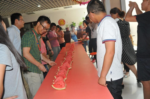 為了豐富員工的業(yè)余生活,增加公司員工的凝聚力。2016年7月22日下午四點整,在我公司餐廳舉行了一場別開生面的西瓜大賽。