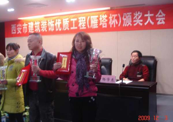 2009年12月3日,在西安市曲江文化宮舉行的“雁塔杯”頒獎大會上,我公司參建的西安市高新區(qū)華晶商務(wù)廣場B棟工程喜獲西安市“雁塔杯”工程獎。