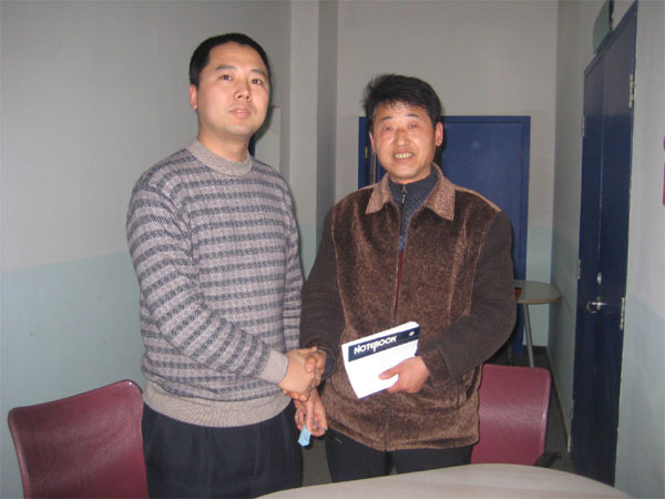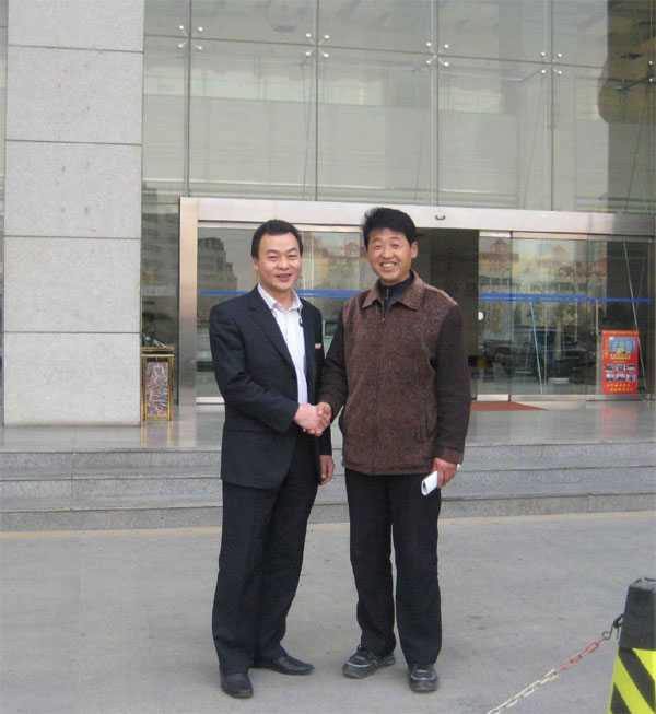 售后服務(wù)部王部長(zhǎng)與華晶商務(wù)廣場(chǎng)物業(yè)部陳副經(jīng)理合影