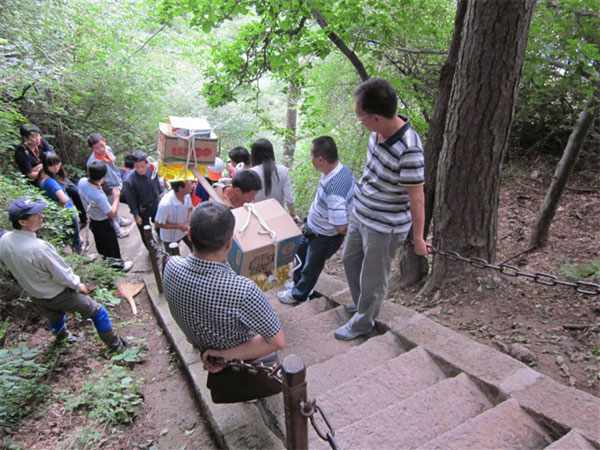 下山的時(shí)候,看著還在努力上山的人們,雖然有些筋疲力盡,心中卻是充滿自豪??删驮诖藭r(shí),心中的成就感卻被眼前的另一種景象所震驚,我們看見(jiàn)了兩個(gè)