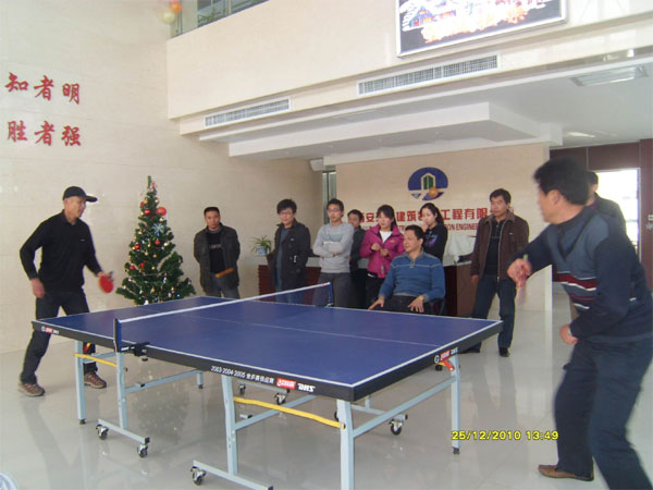 12月25日下午,我天幕公司在工會(huì)以及辦公室人員的精心組織下,圣誕乒乓球賽正在舉行,工程部副總朱峰為場(chǎng)內(nèi)裁判。這次活動(dòng)得到了廣大員工的積極響應(yīng),大家踴躍報(bào)名,其中有30多人參賽。